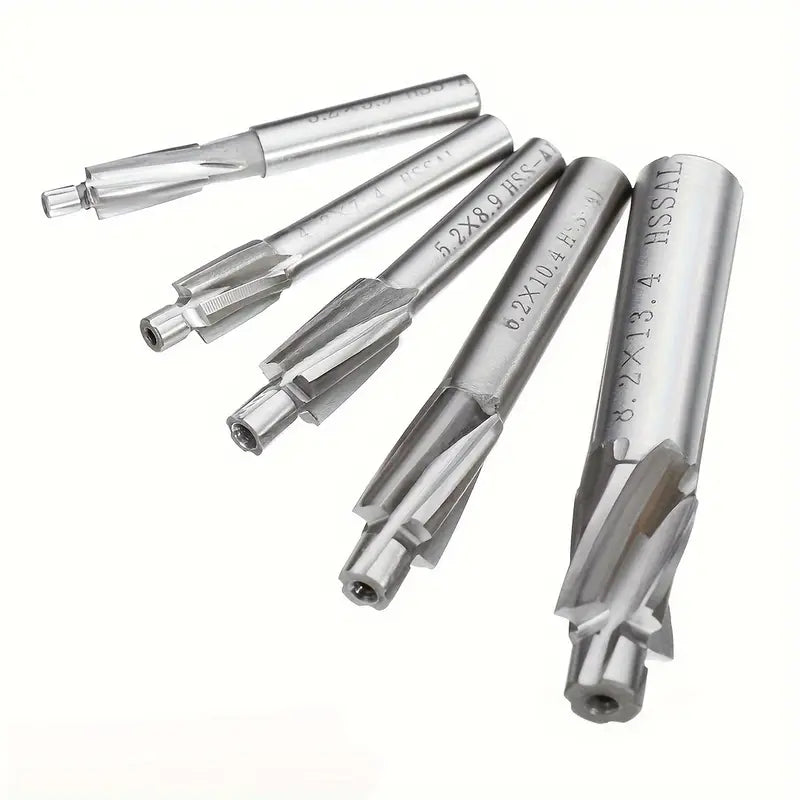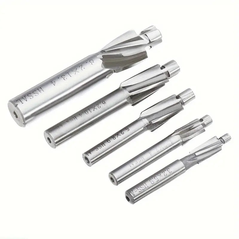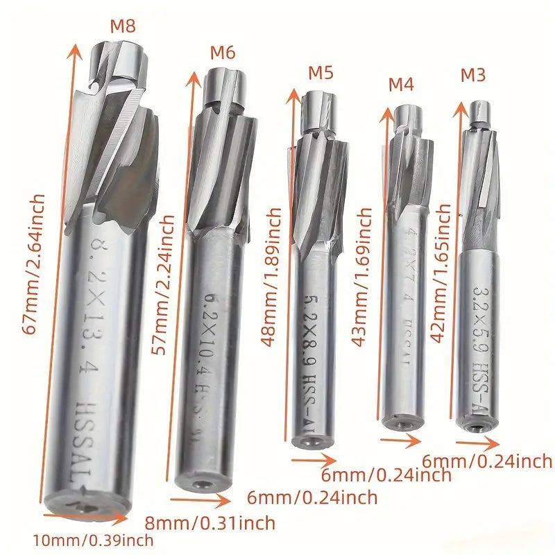 5-Piece High-Speed Steel Countersink Milling Cutters Set, M3-M8 Shank Type Cutter Tools for Metalworking (Auxiliary)