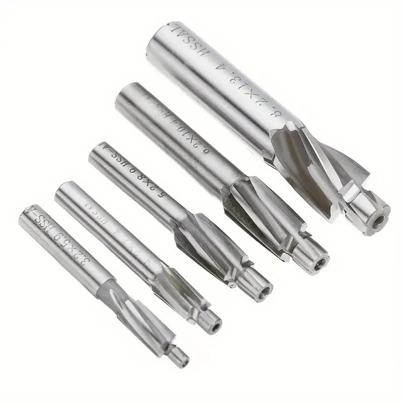 5-Piece High-Speed Steel Countersink Milling Cutters Set, M3-M8 Shank Type Cutter Tools for Metalworking