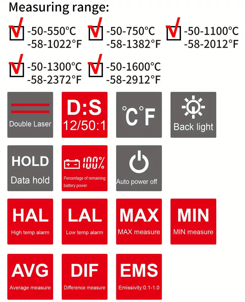 -50~1600 Degree Digital Infrared Thermometer Laser Industrial Thermometer With Color LCD Temperature Thermometers Meter