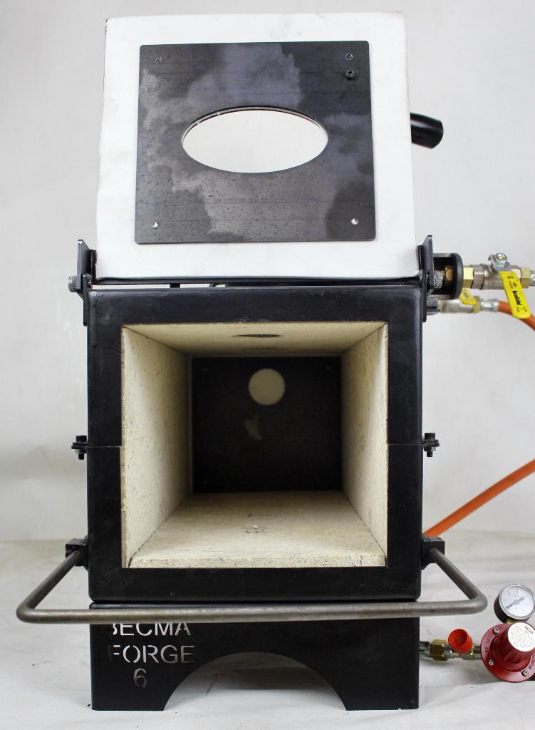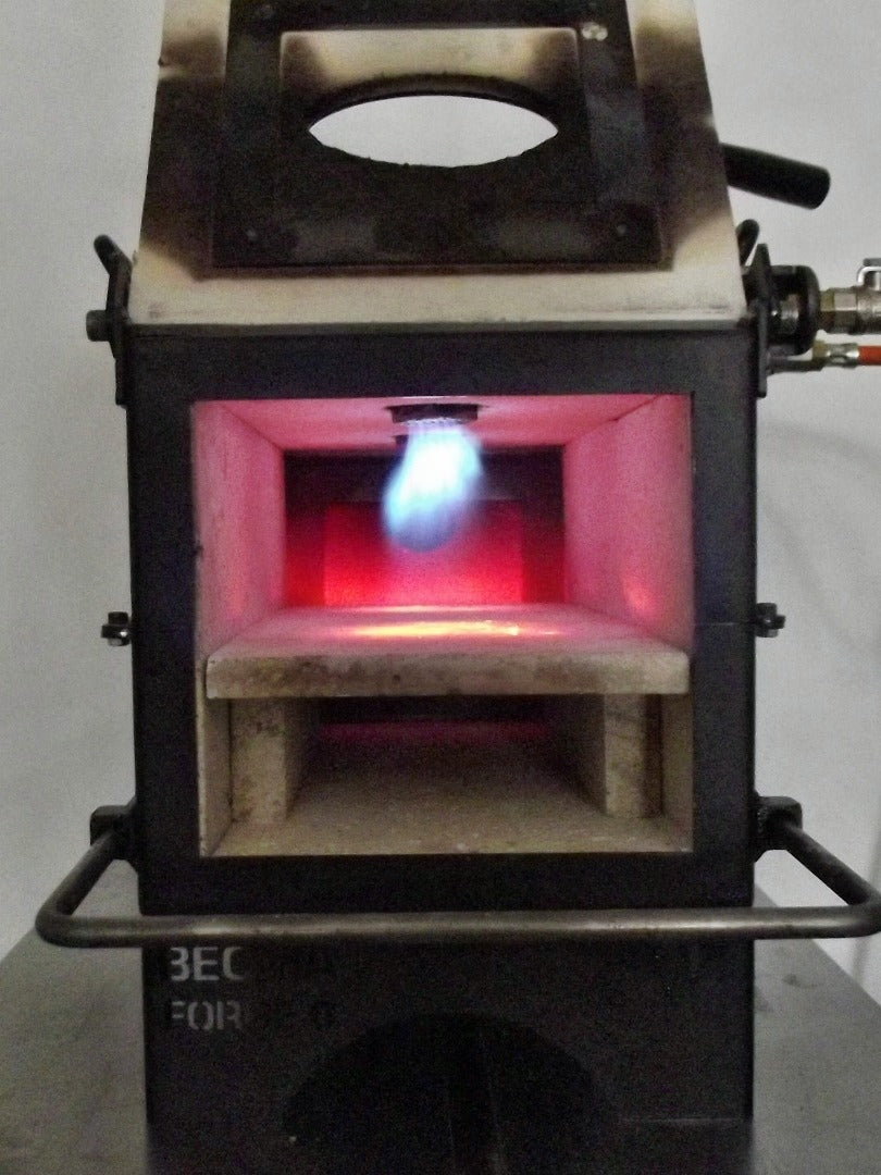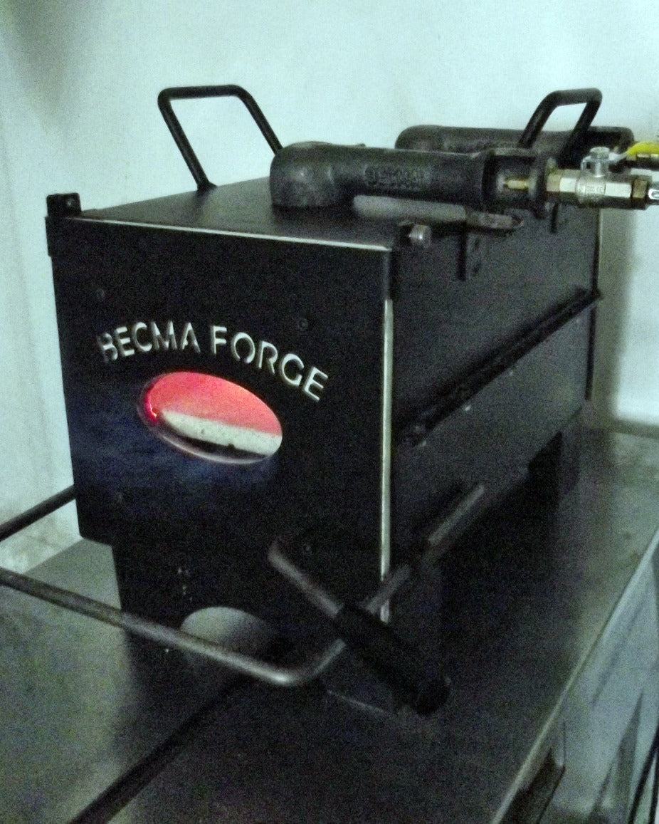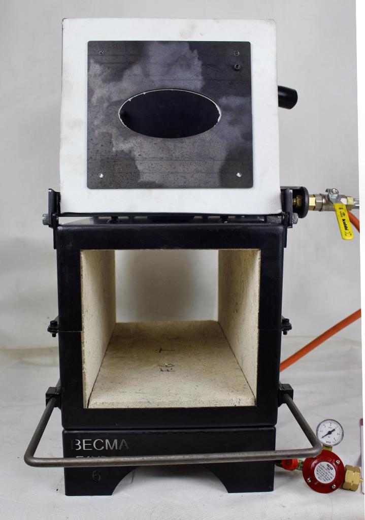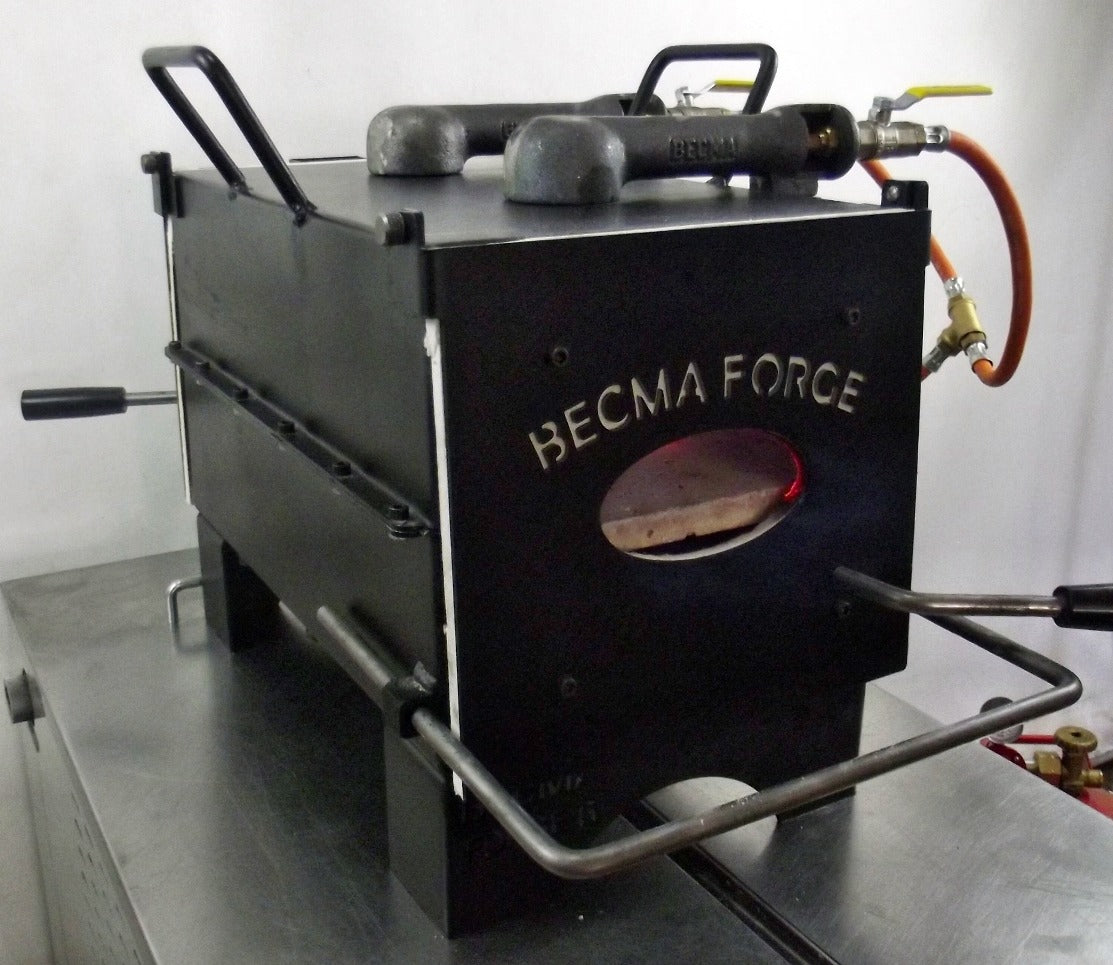 This complete system, including the casing, dual burners, and hose package, is a 100% BECMA FORGE design. With 40 mm ceramic fiber insulation lining the interior and dual-sided doors, the forge maximizes heat retention and provides convenient access to the internal workspace.