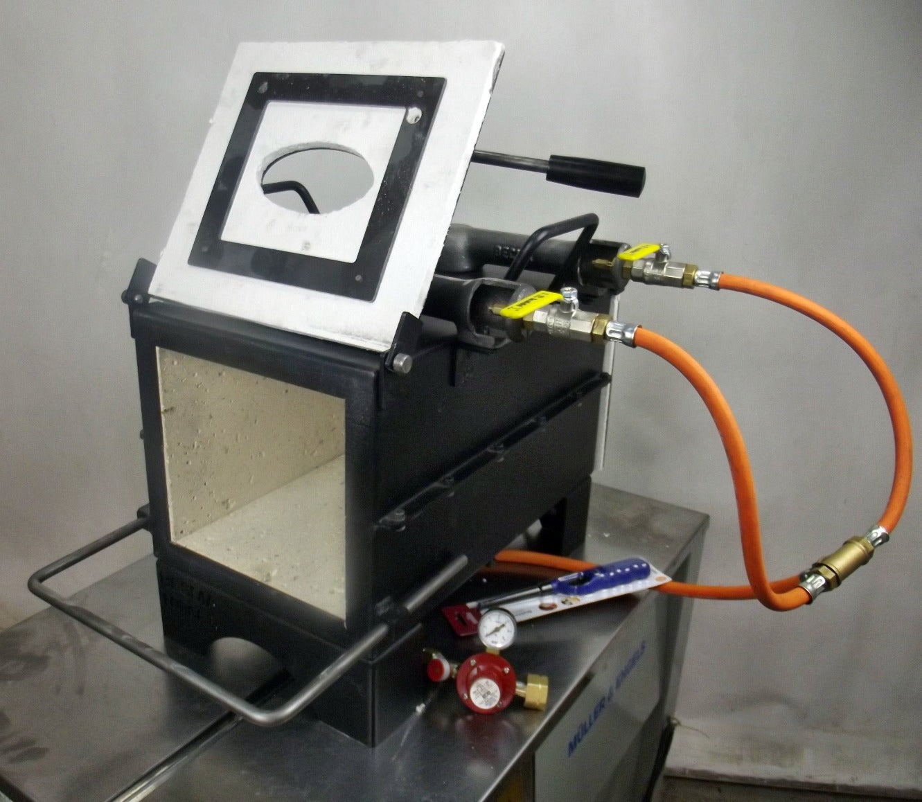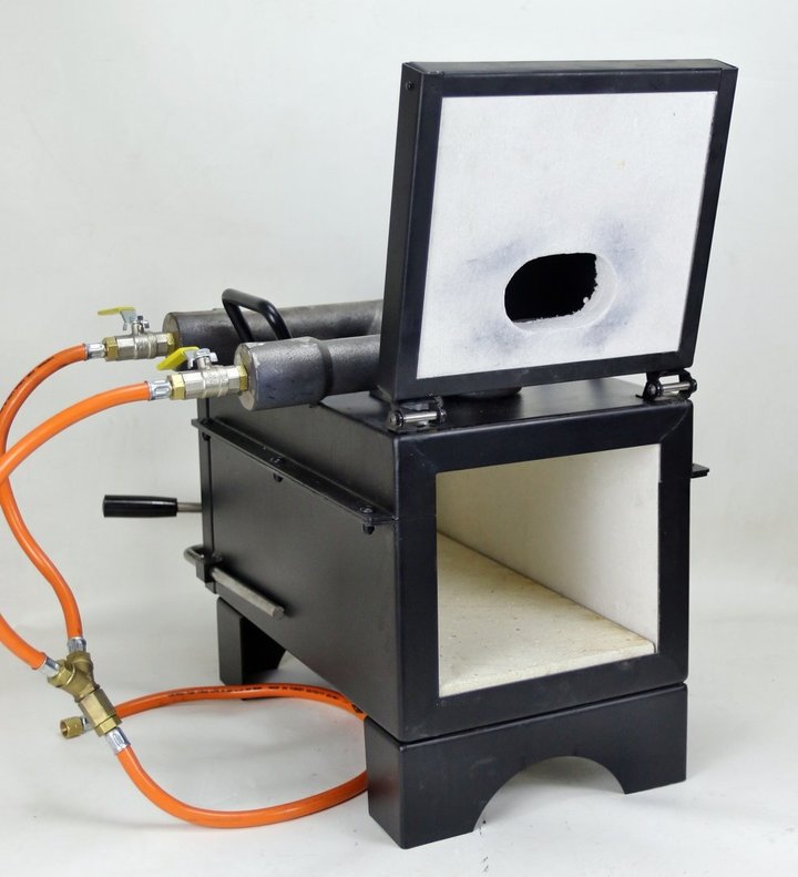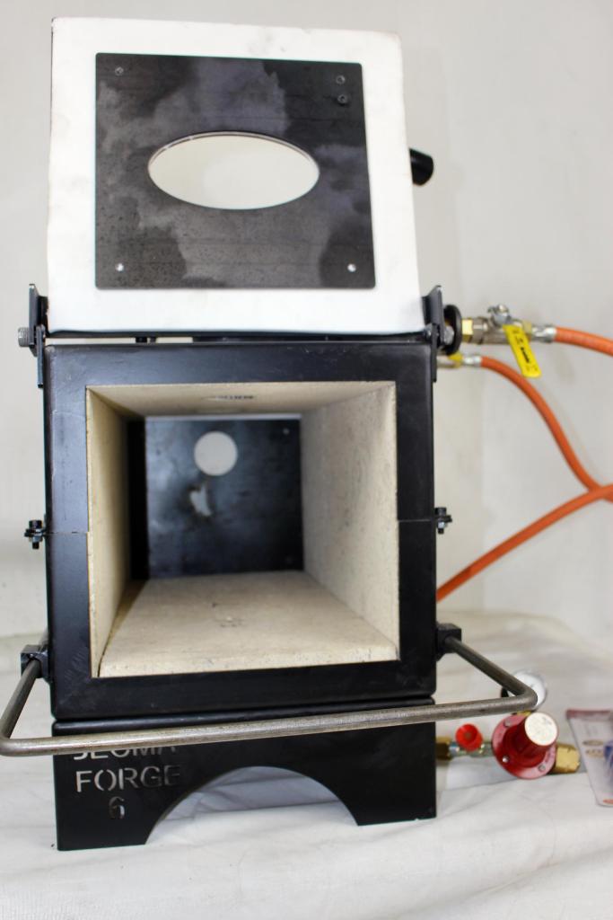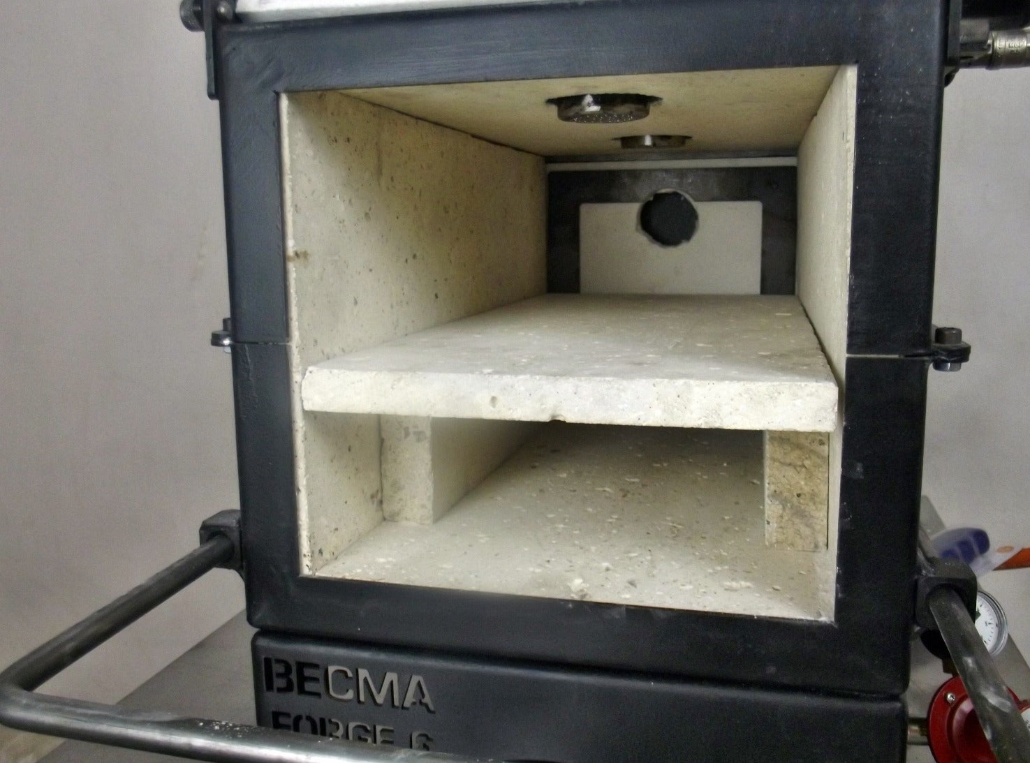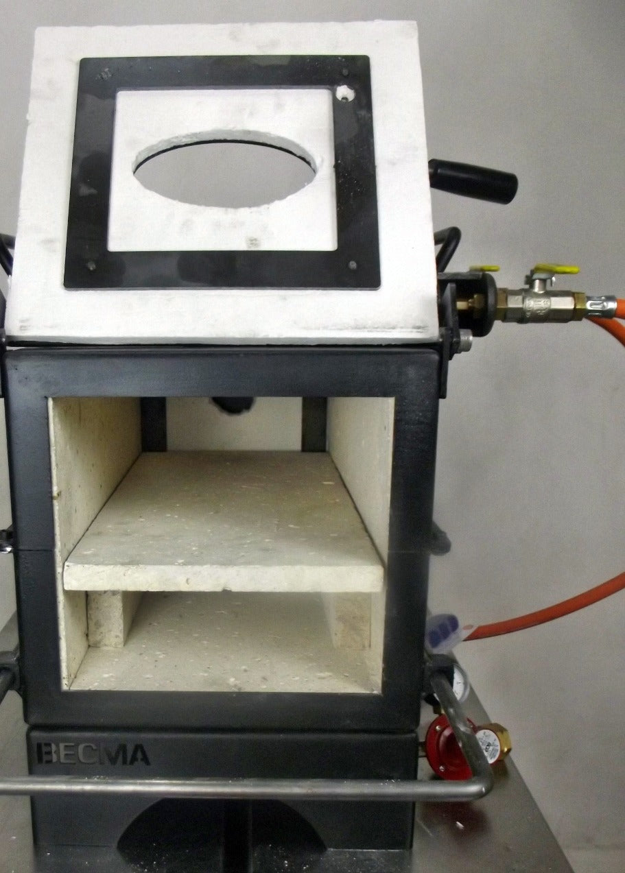 This complete system, including the casing, dual burners, and hose package, is a 100% BECMA FORGE design. With 40 mm ceramic fiber insulation lining the interior and dual-sided doors, the forge maximizes heat retention and provides convenient access to the internal workspace.