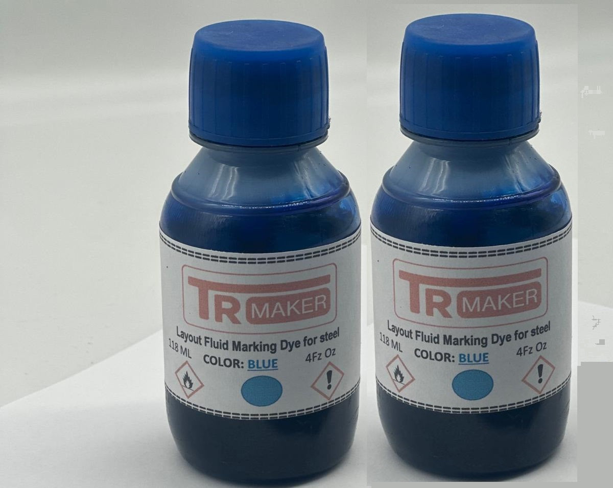 Machine shop operators rely on Steel Blue Layout Fluids to draw sharp, clear and precise lines. When applied, our design fluids provide a uniform deep blue color that prevents shine and dries in minutes. All Deposition Fluids form an extremely thin film that adds virtually no thickness to the workpiece and remains flexible without cracking or chipping.