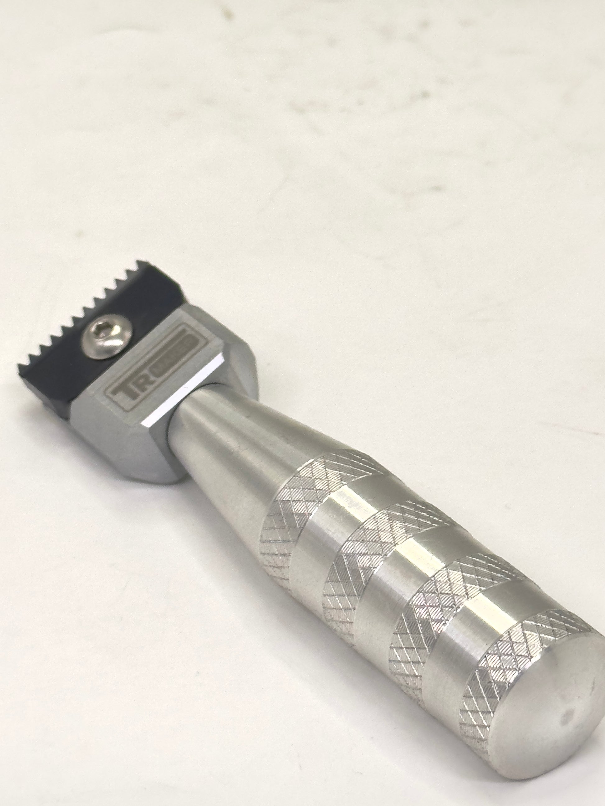 This tool allows you to recondition hardened and compacted polishing felts, restoring them to a soft, cotton-like texture. Thanks to its carbide cutting blade and comb-style structure, the process can be carried out in a controlled, precise, and safe manner.
